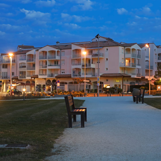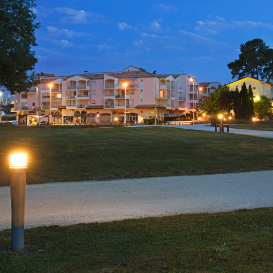 Les Bornes bois de section évolutive ou cylindrique créent un balisage discret au cœur des espaces de vie.