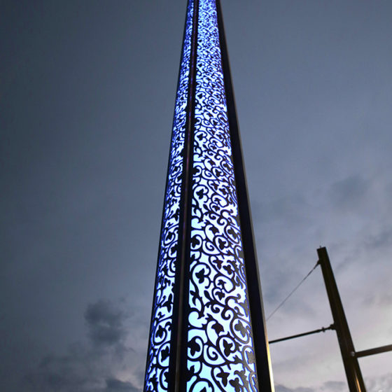 Mât support de LAC au design modulaire et modulable offrant autant de solutions esthétiques personnalisées qu’il y a de projets différents.