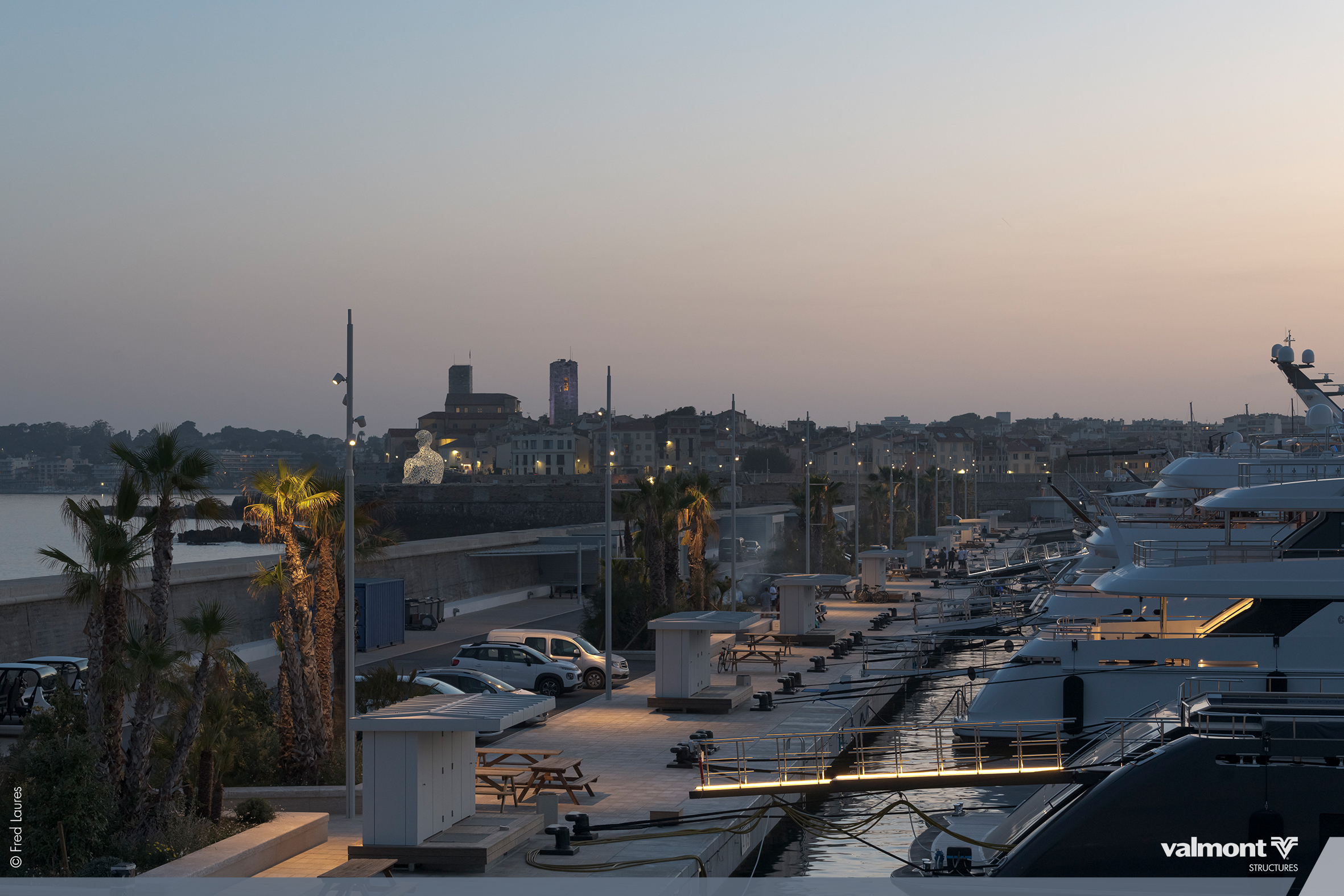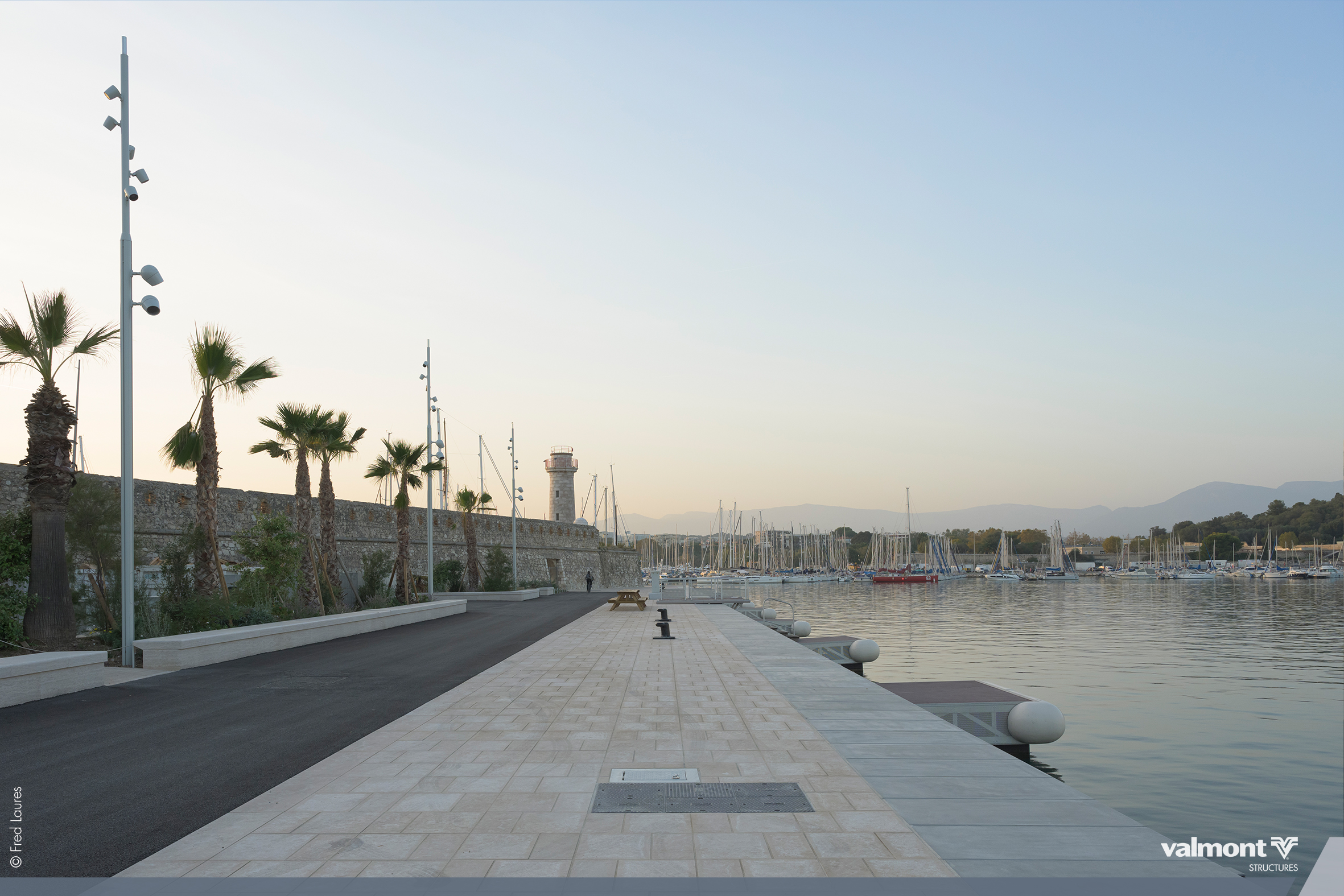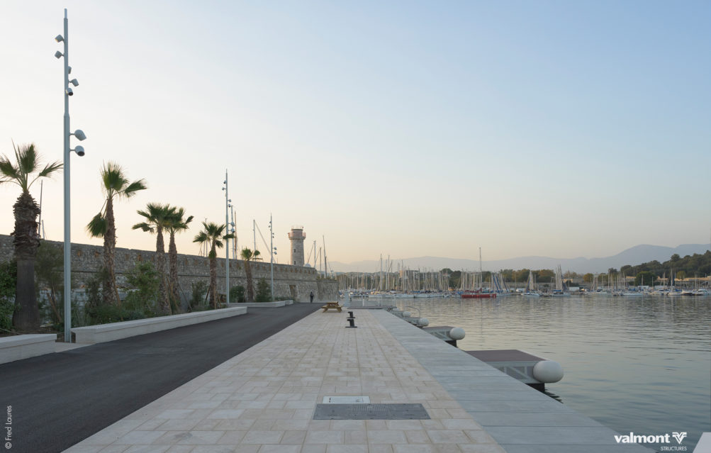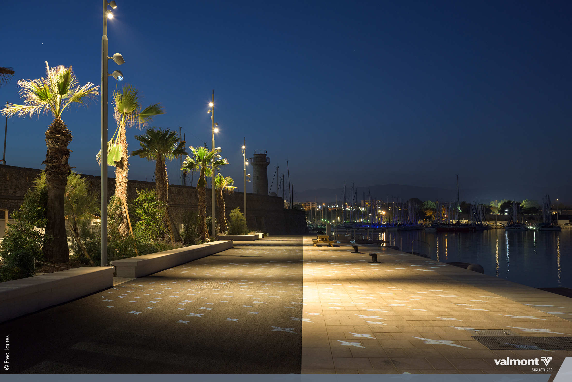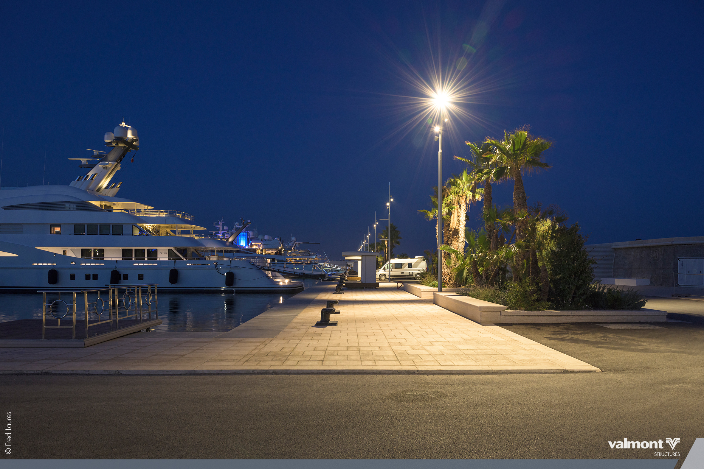 L’enceinte portuaire du port Vauban d’Antibes est en pleine mutation avec l’achèvement de la première phase des travaux : le prestigieux Quai des Milliardaires. A site exceptionnel, mise en lumière exceptionnelle. Traitée en mode scénique, la disposition des projecteurs, autour d’une gamme Flow revisitée pour l’occasion, assure un éclairage de qualité tout en soulignant les lignes épurées du site. L’élégance tout simplement.