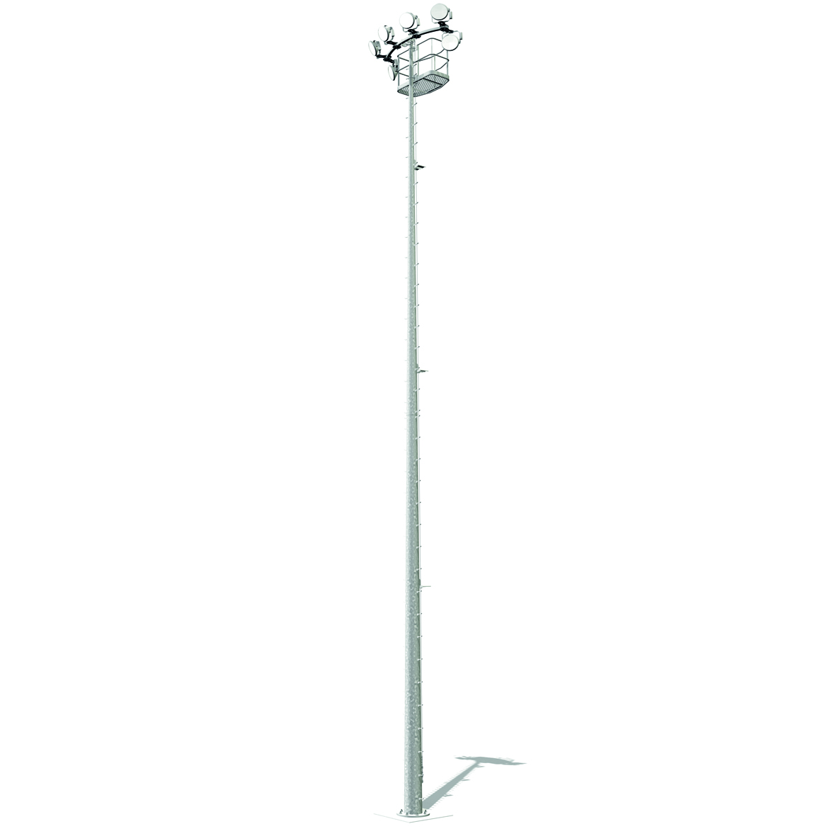 Mât support projecteurs de section rond conique en acier.