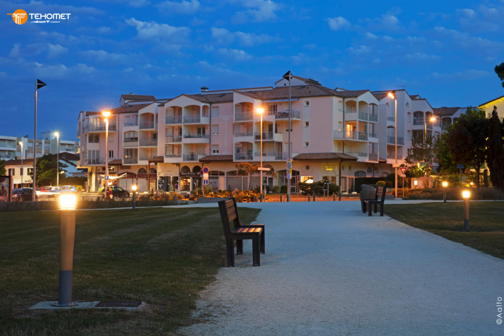 Les Bornes bois de section évolutive ou cylindrique créent un balisage discret au cœur des espaces de vie.