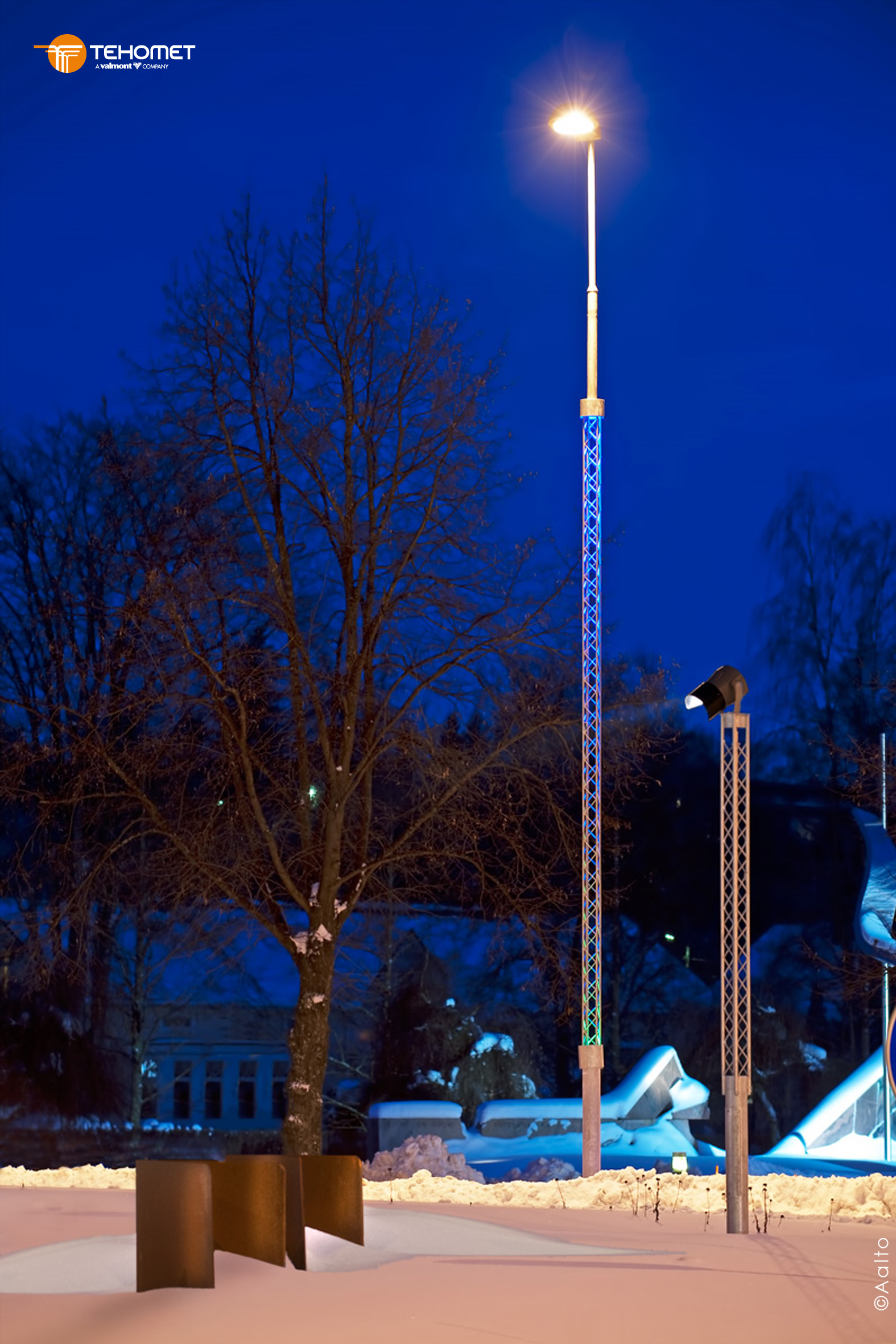 Une mise en lumière du treillis apporte balisage et esthétisme à l’ensemble.