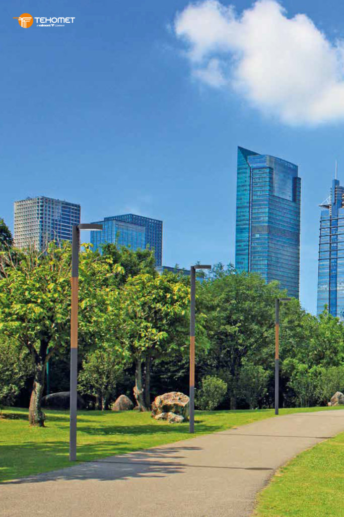 Rythmi est un mât bois de section carrée ou ronde alternant matière acier & bois à la façon d’un tempo musical.
