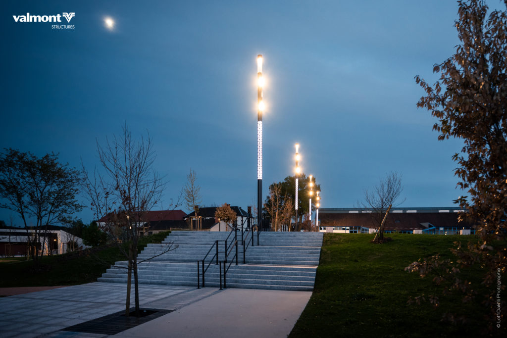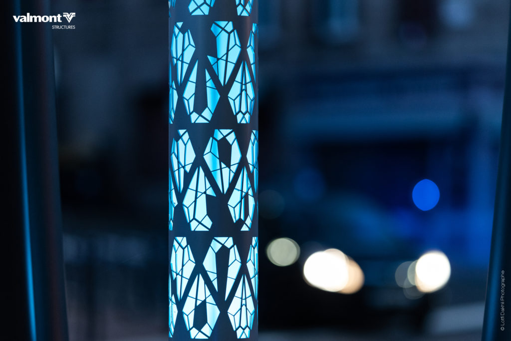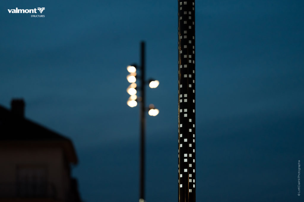 Ce concept élaboré pour les collectivités, combine plusieurs fonctions : éclairage, personnalisation lumineuse dynamique, vidéo protection, sonorisation et mobilier urbain.
