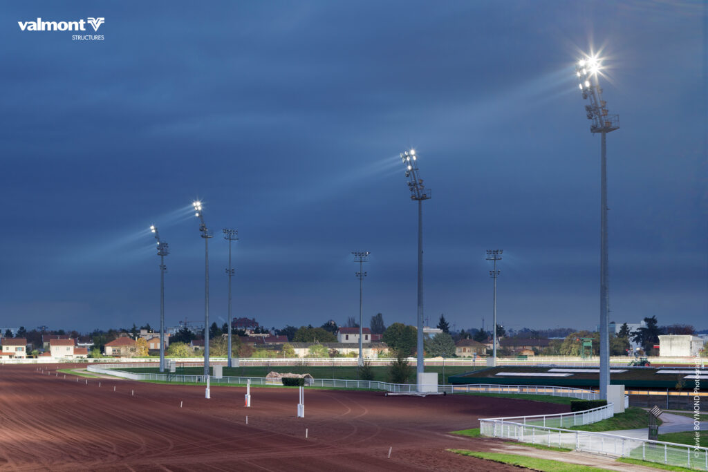 Mât support projecteurs de section polygonale en acier.