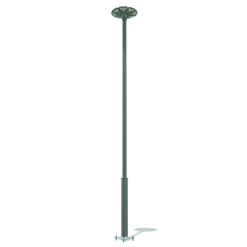 Mât de section ronde à borne en acier.