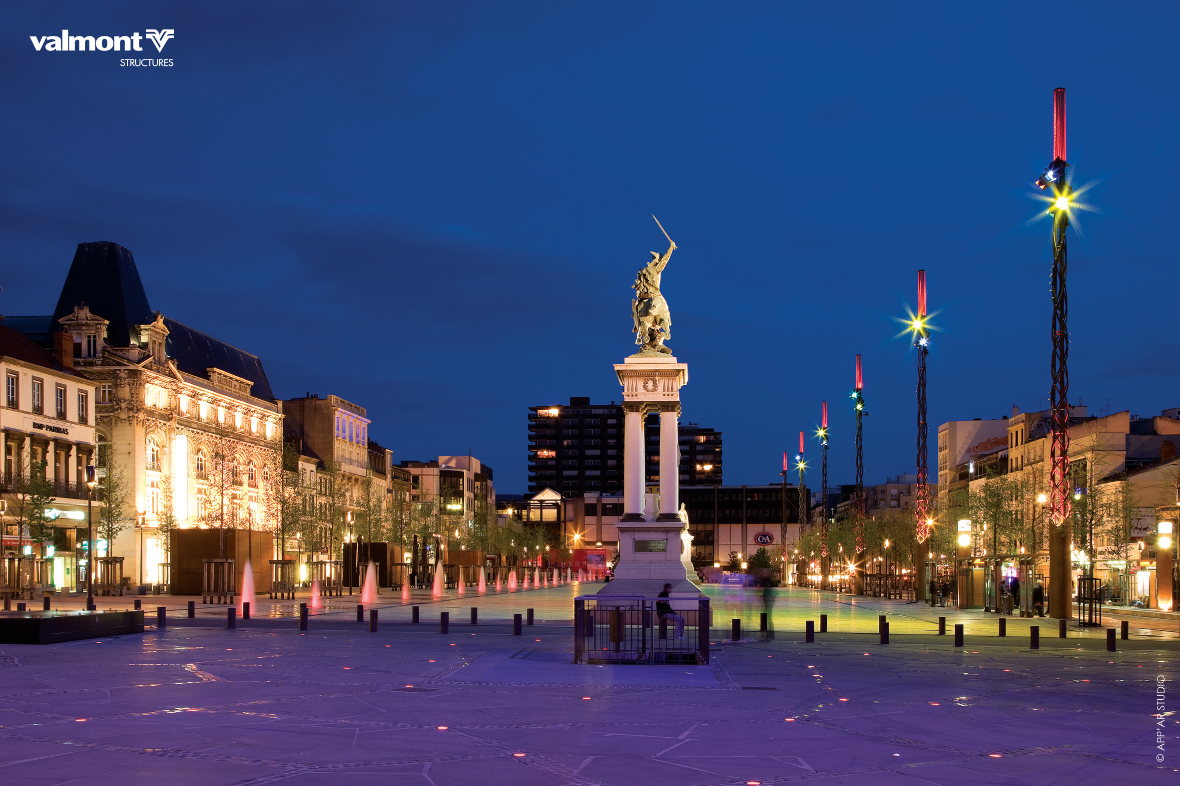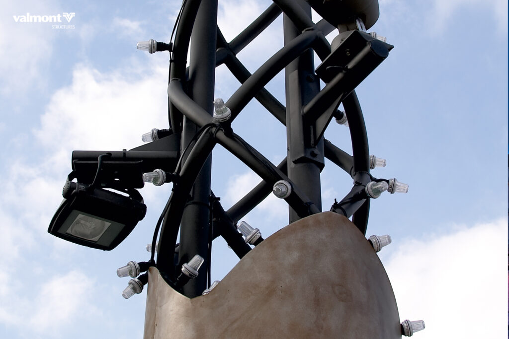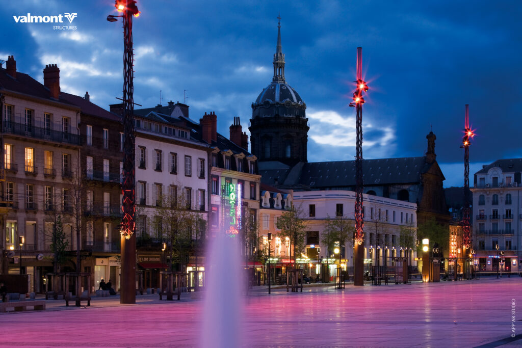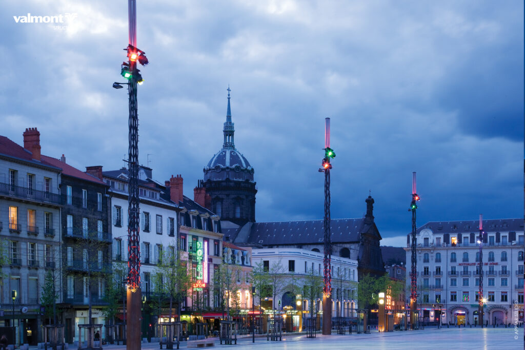 Des totems en guise de balises lumineuses évoquant les éruptions de lave…