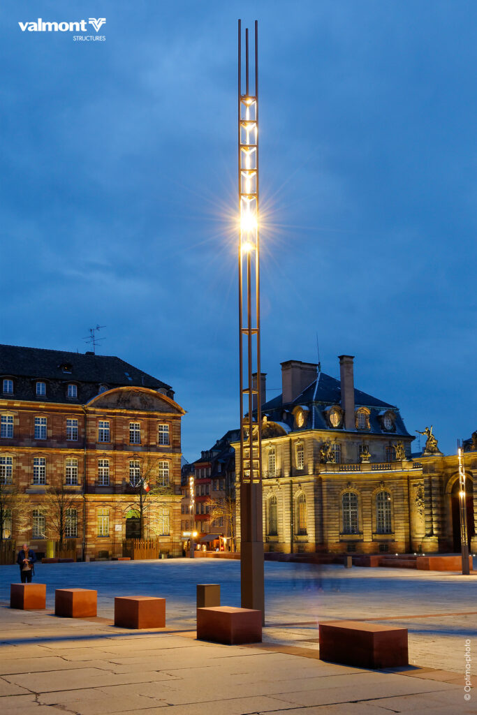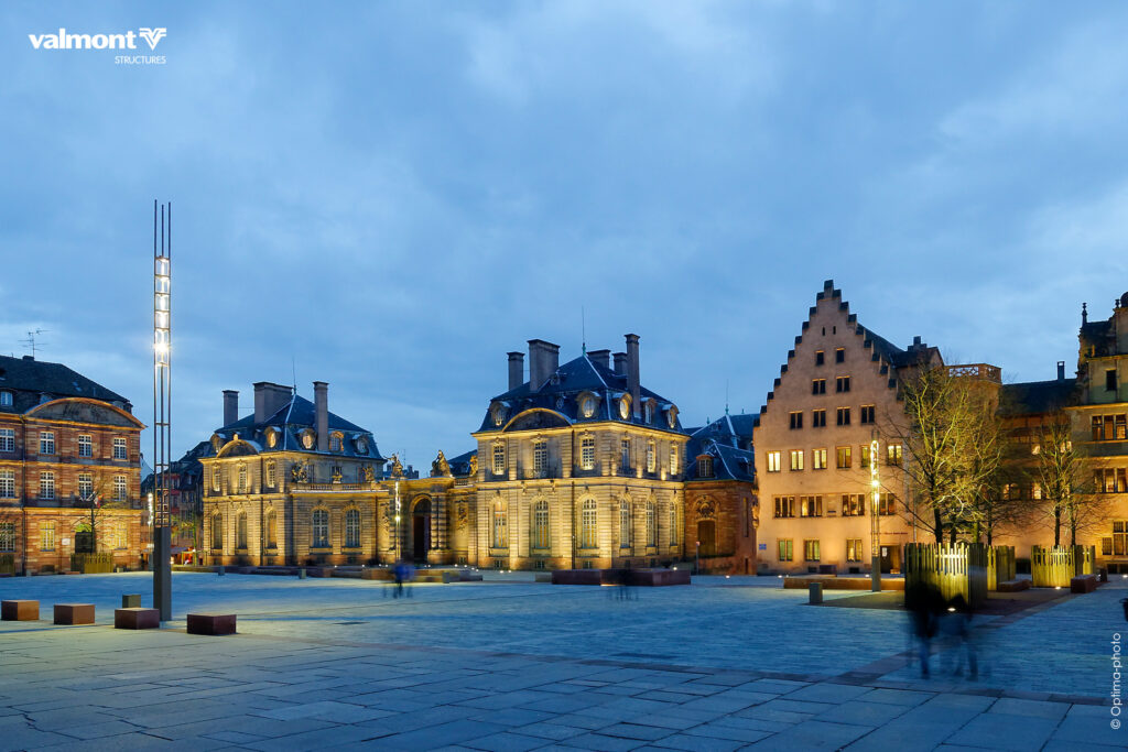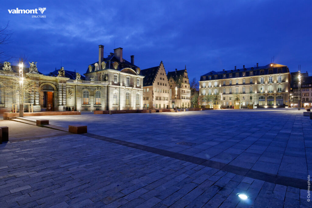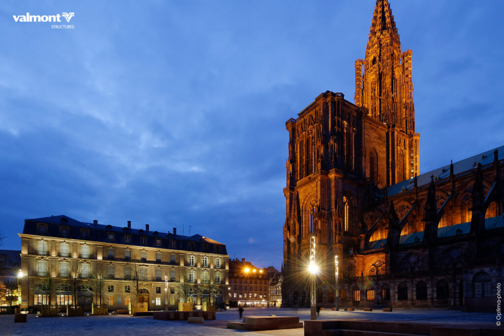 Au pied de la Cathédrale, mise en lumière de la place historique de Strasbourg.