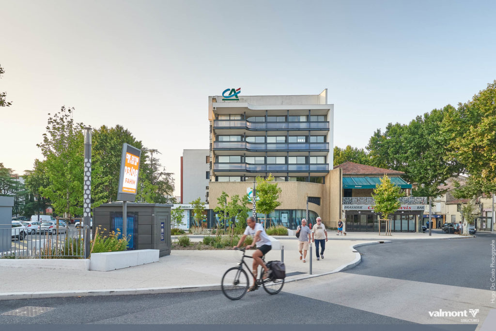 L’idée de base de la requalification de la Place Jean Jaurès était d’ouvrir l’espace d’accès à la rue commerçante de la République tout en sécurisant ce point central de la ville.Ce nouvel aménagement composé autour des platanes centenaires ouvre l’espace aux piétons.