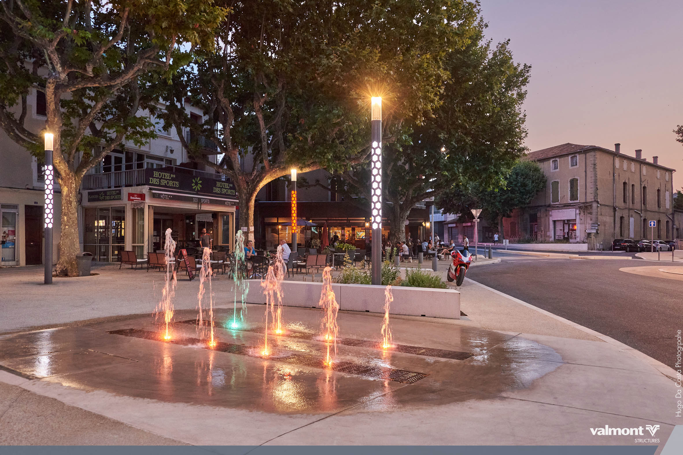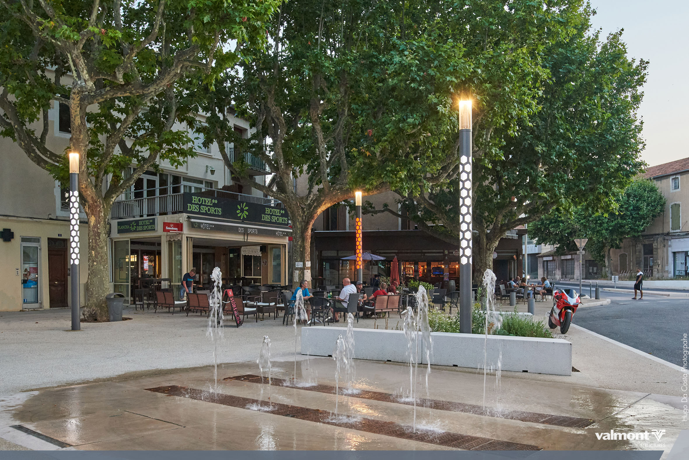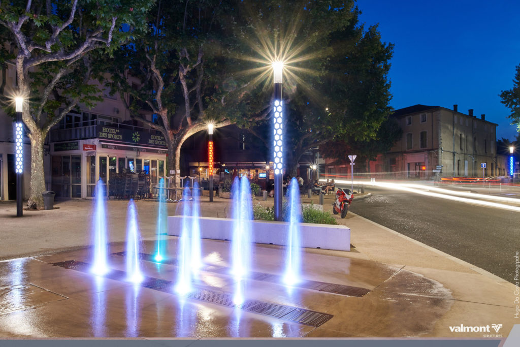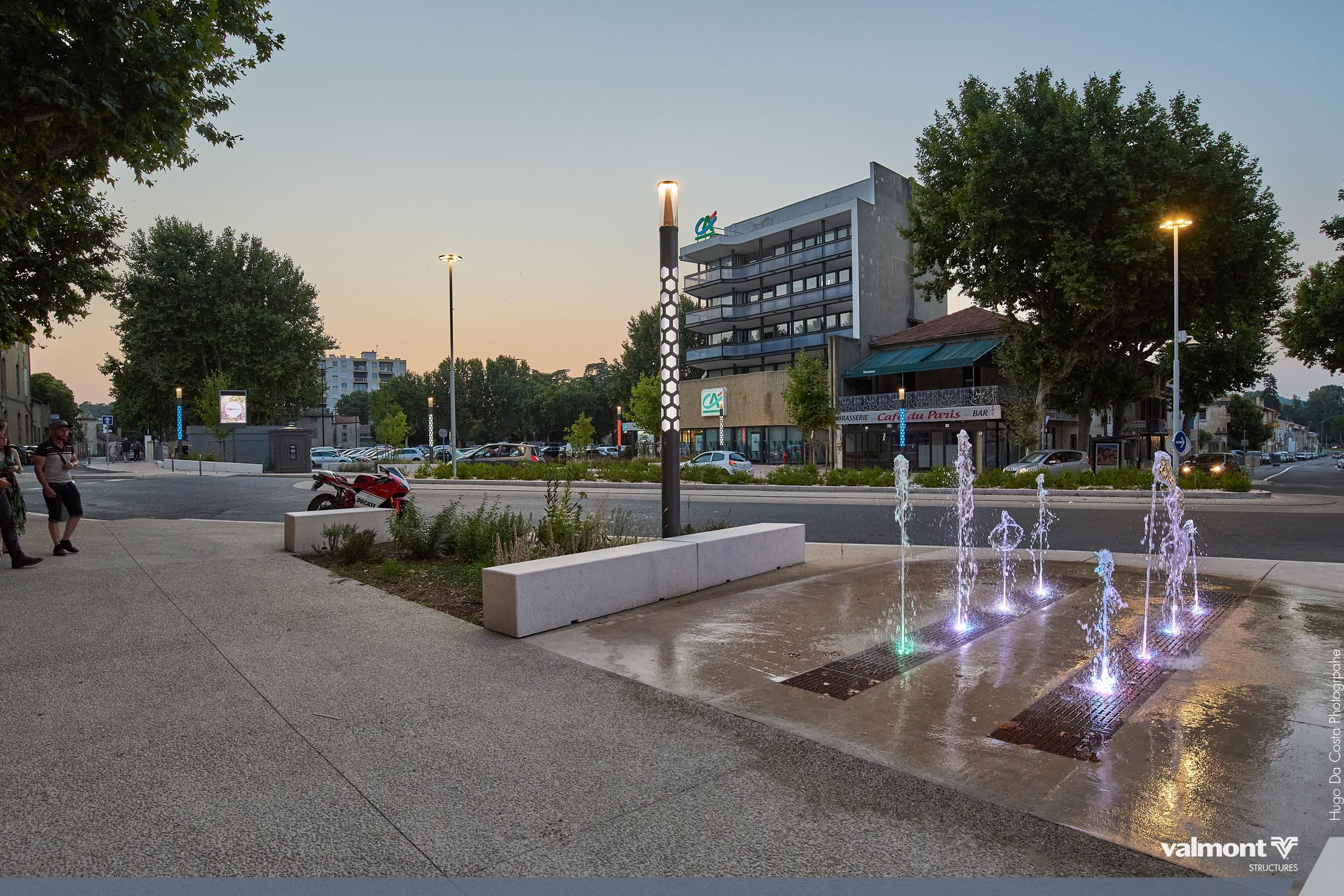 Square, kiosque et terrasses de café sont désormais baliser par des Smart Jalousie discrètes en journée et illuminées le soir venu. Leur rétro éclairage teinté de bleu diffuse une ambiance apaisée pour profiter des soirées d’été.