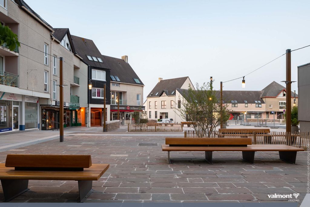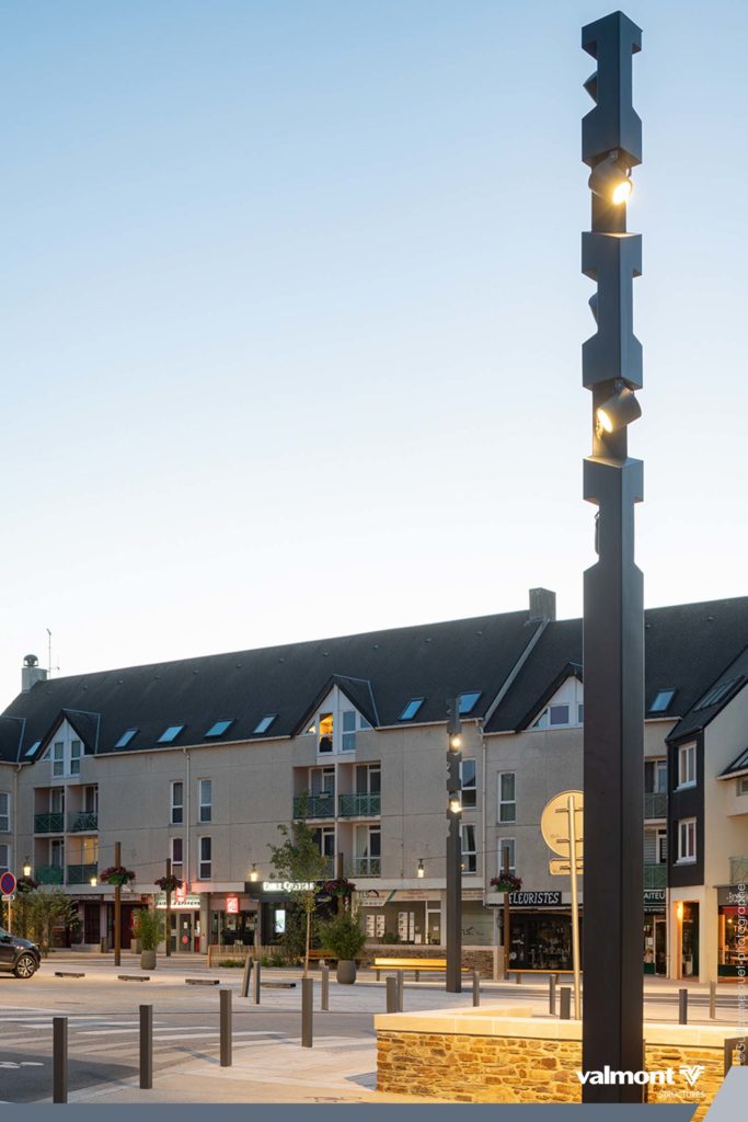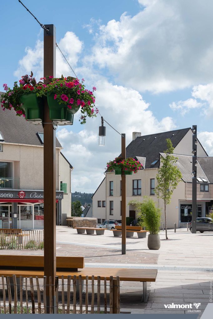 Marchés et festivités prendront un air de guiguette avec la mise en lumière des pourtours de la place, supportée par des mats carrés en acier sublimés bois aux tonalités faisant écho au mobilier urbain.